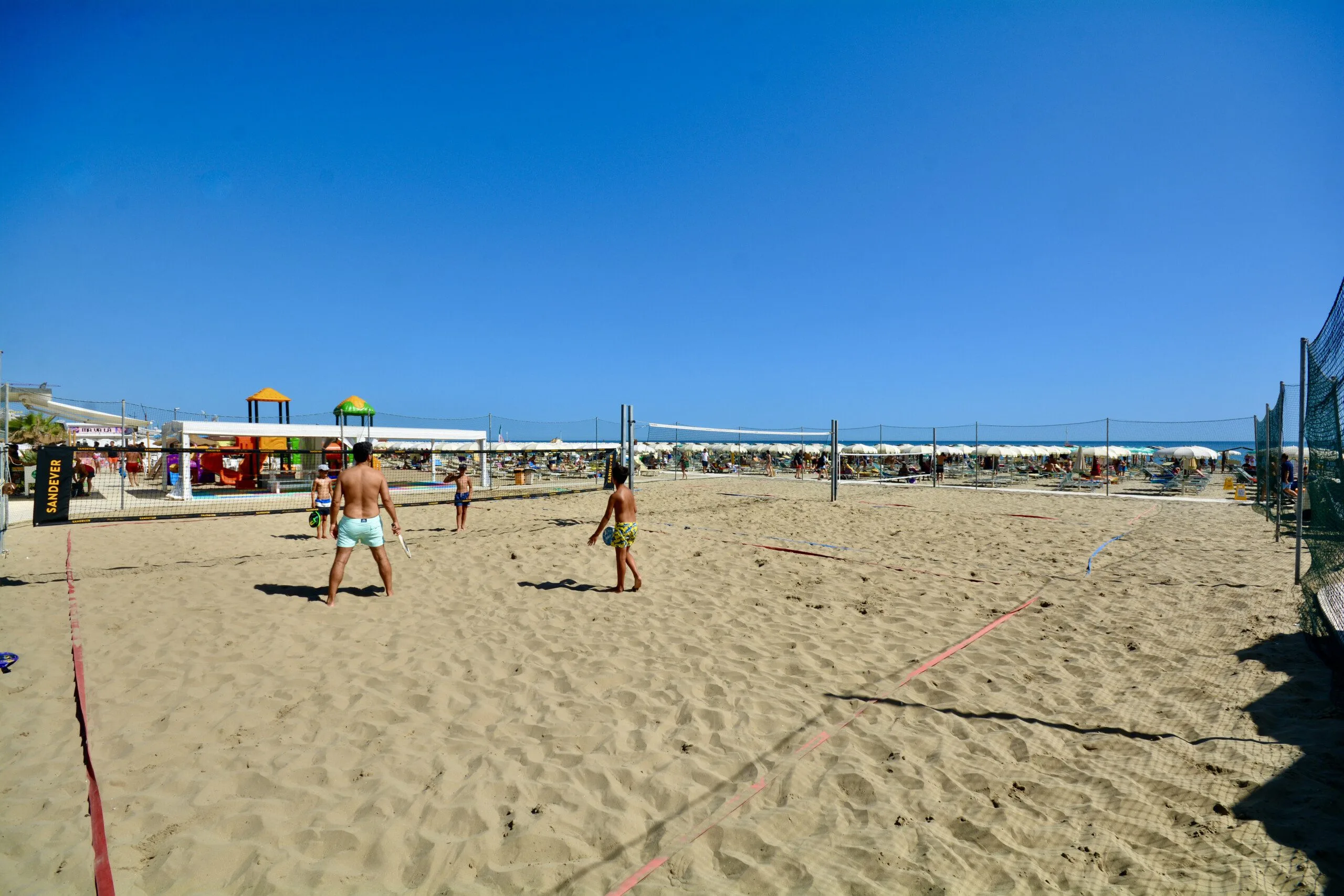 Campi da gioco per beach tennis e beach volley, con reti di protezioni e di sabbia morbida per avvincenti e divertenti sfide!